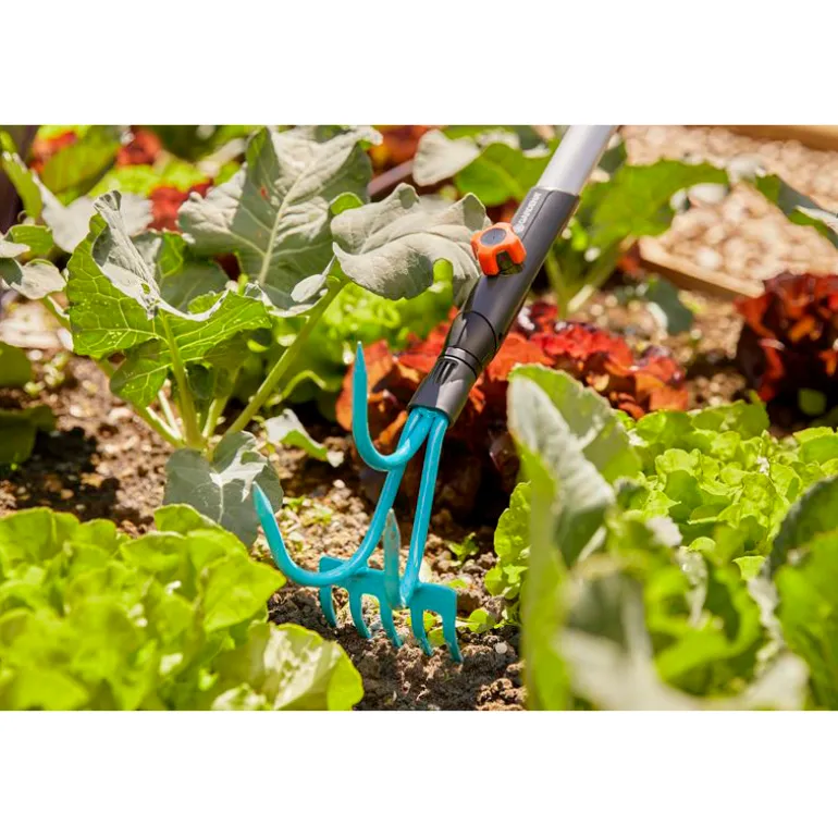 GARDENA:n Combisystem-sarjan möyhennin/harava avulla rikkaruohojen poistaminen kukkapenkistä on helpompaa. Tämä yhdistetty ratkaisu tekee kitkemisestä paljon helpompaa ja rentouttavampaa. Tarvitaan vain yksi puutarhatyökalu, jolla rikkaruohot voidaan ensin irrottaa yhdellä puolella ja sitten poimia kukkapenkistä toisella. Möyhennin toimii täysin mekaanisesti. Möyhennin/harava voidaan liittää mihin tahansa GARDENA combisystem -varteen, joka ostetaan erikseen.