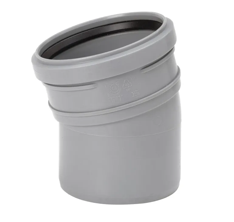 Mutka holkilla ja yleistiivisterenkaalla. Hyväksytty upotettavaksi ja käytettäväksi maahan asennettuna tonttiviemärinä.