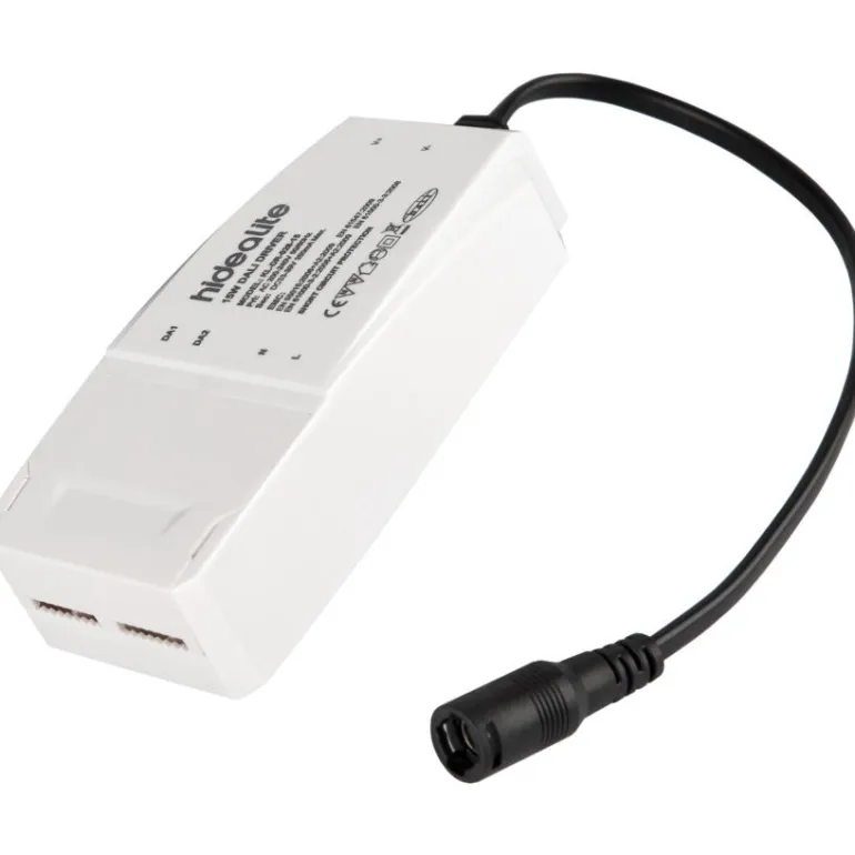 Hide-a-Lite 7981779 on DALI-muunnin vakiovirtavalaisimille. Ensisijaisella puolella pikaliitin lisäkytkennälle ja ruuviton jännitteen poisto kaapeleille 0,5-2,5mm². Toissijaisella puolella kaapeli phono-liittimellä.