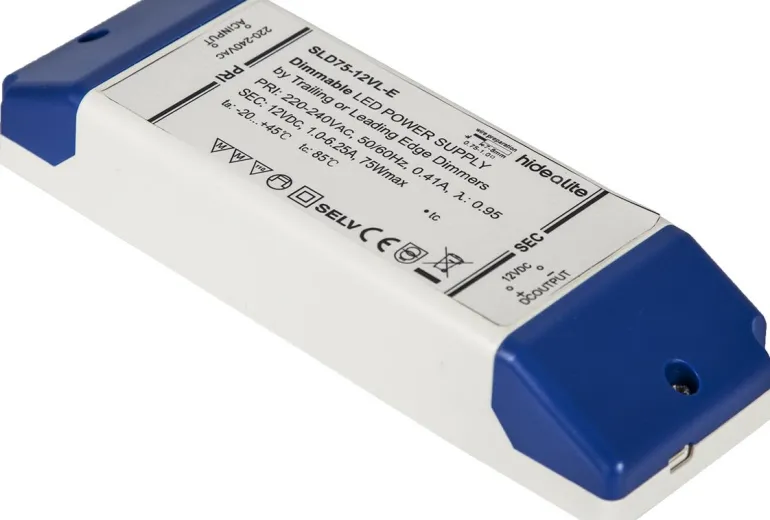 Hide-a-Liten LED-himmenninmuuntaja SLD FDIM on muuntaja, jossa on vaihehimmennystoiminto. Valoa voidaan säätää tavallisilla kierto- ja painikehimmentimillä etu- ja takareunaohjauksella. Sisäänrakennettu oikosulkusuoja, ylikuormitussuoja ja ylikuumenemissuoja automaattisella uudelleenkäynnistyksellä.