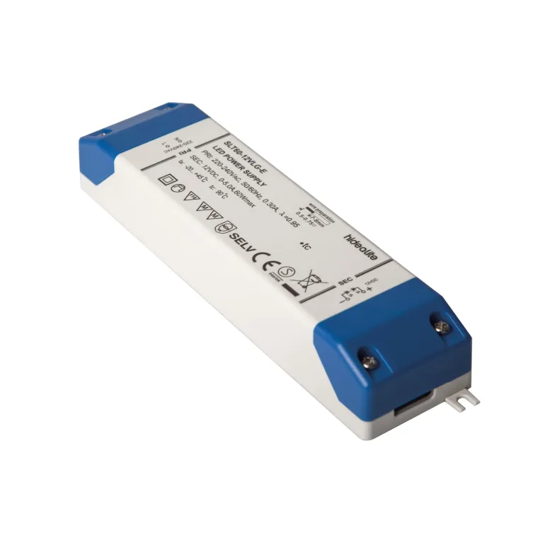 Hide-a-Lite LED-muuntaja SLT on muuntaja, joka on tarkoitettu käytettäväksi 12 V:n tai 24 V:n LED-valonlähteiden kanssa. Mallissa on oikosulkusuoja, ylikuormitussuoja ja ylikuumenemissuoja automaattisella uudelleenkäynnistyksellä.