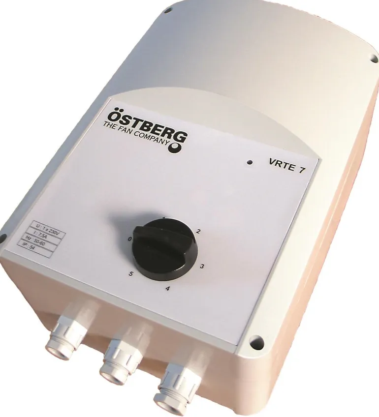 VRTE vaihtovirtamoottoreille. Manuaaliseen jänniteohjaukseen, viisi kiinteää jännitetasoa ja 0-asento. Jännitteellä säädettävien yksivaihemoottorien nopeuden säätöön. Ohjaus tapahtuu kotelon etupuolella olevalla katkaisimella. Kotelossa on toiminnan merkkivalo. Kotelo on valmistettu PVC:stä. Taajuus: 50 tai 60 Hz.