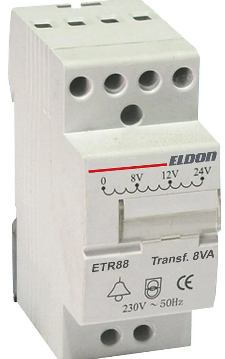 Muuntaja asennettavaksi DIN-kiskoon ja 3 eri sekundäärijännitteellä 8, 12 ja 24 V AC. Muuntaja on suunniteltu kestämään jatkuvaa kuormitusta