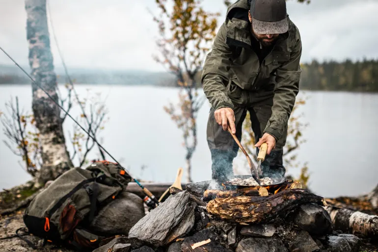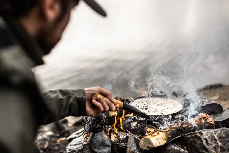 Muurinpohjapannu taittuvalla tammikahvalla, täydellinen luontoon vietäväksi.