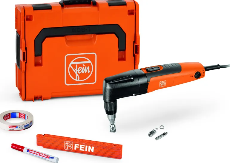 BLK 1.6 E on yleiskäyttöinen nakertaja katto- ja julkisivurakentamiseen. Tarkat leikkaukset peltilevyissä, profiileissa, profiili- ja aaltolevyissä 1,6 mm:iin asti. Mukana ylimääräinen meisti- ja matriisisarja profiili- ja aaltolevyille, kestotussi, maalarinteippiä ja taittomitta.