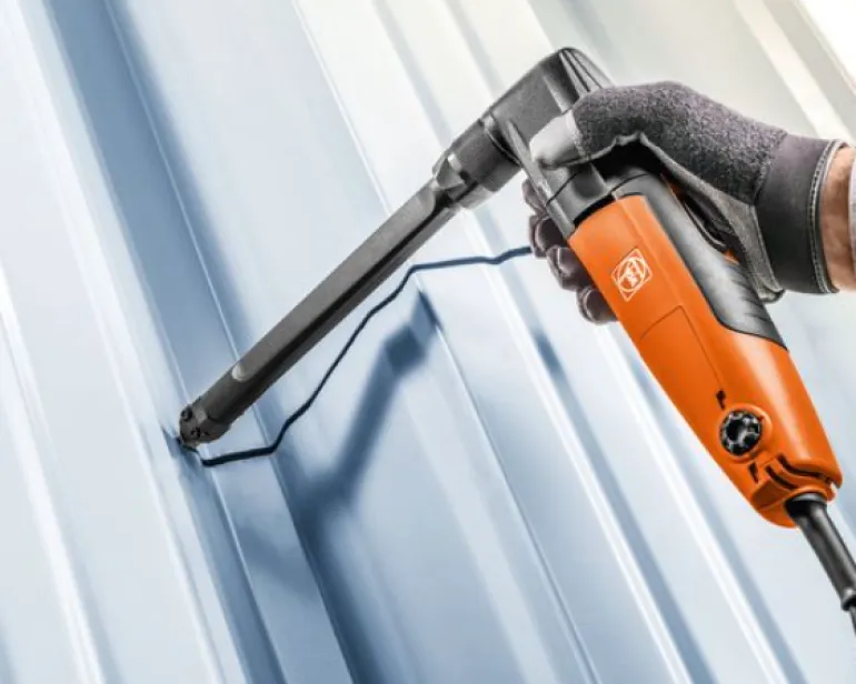 Pienikokoinen nakertaja korkeaprofiilisille profiililevyille katto- ja julkisivurakentamiseen.
