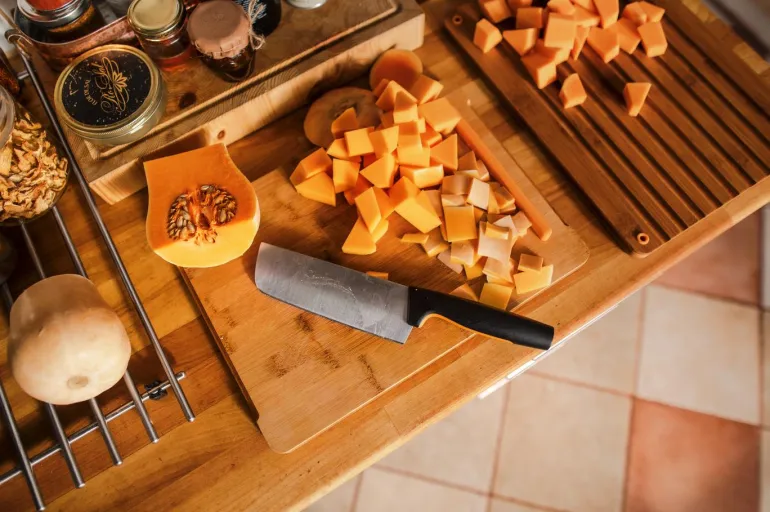 Monikäyttöinen aasialainen veitsi leveällä terällä, joka sopii täydellisesti suurempien vihannesten pilkkomiseen. Veitsenterä on valmistettu kestävästä japanilaisesta ruostumattomasta teräksestä.