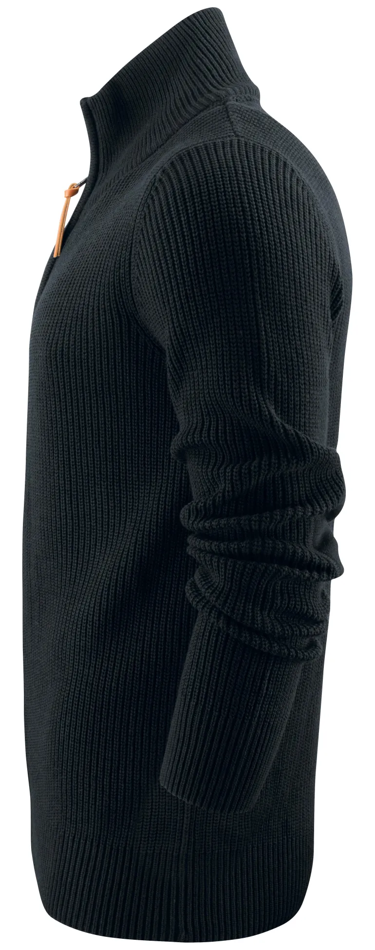 James Harvest Flatwillow on puolivetoketjullinen neulepusero korkealla kauluksella. Resori kauluksessa, hihansuissa ja helmassa. Lisäksi kyynärpäissä vahvikkeet sekä keinonahkainen vetoketjun vedin.