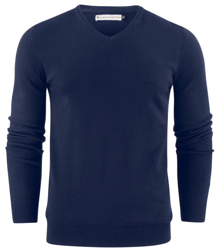 James Harvest Ashland V on neule V-muotoisella kaula-aukolla ja joustinneulotuilla hihansuilla ja helmalla. Kaksinkertainen ja sileä reunus kaula-aukossa.