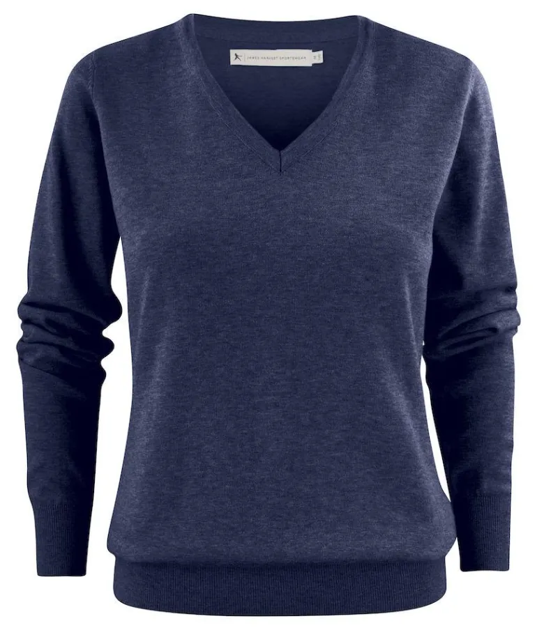 James Harvest Ashland V Woman on neule V-muotoisella kaula-aukolla ja joustinneulotuilla hihansuilla ja helmalla. Kaksinkertainen ja sileä reunus kaula-aukossa.