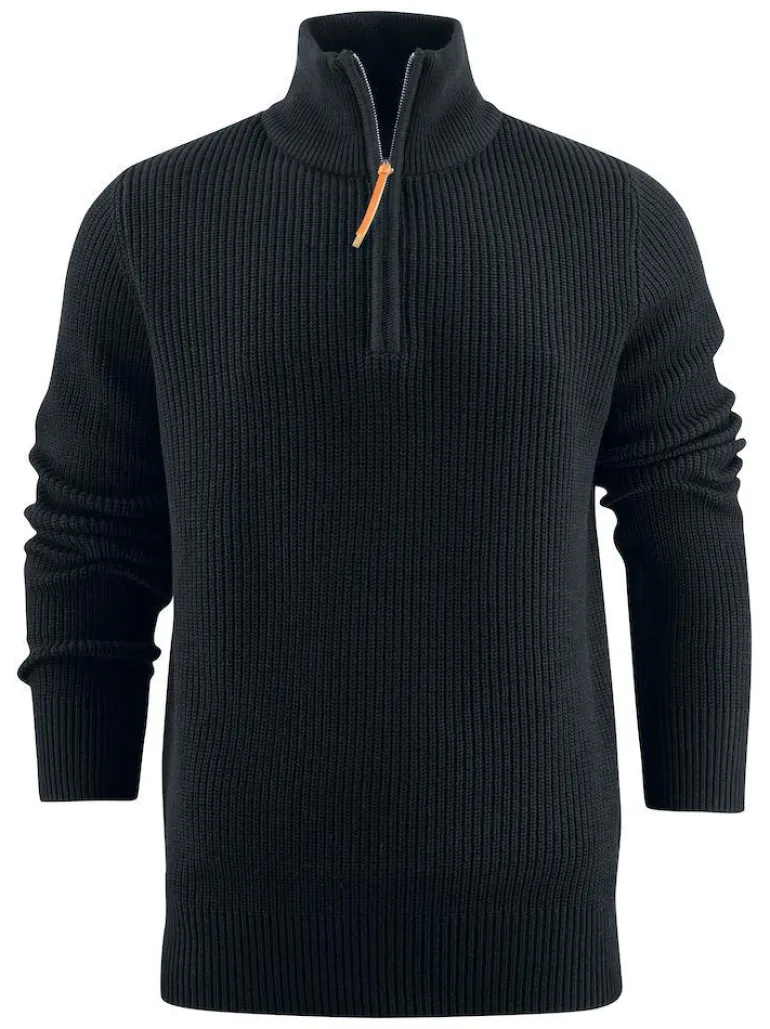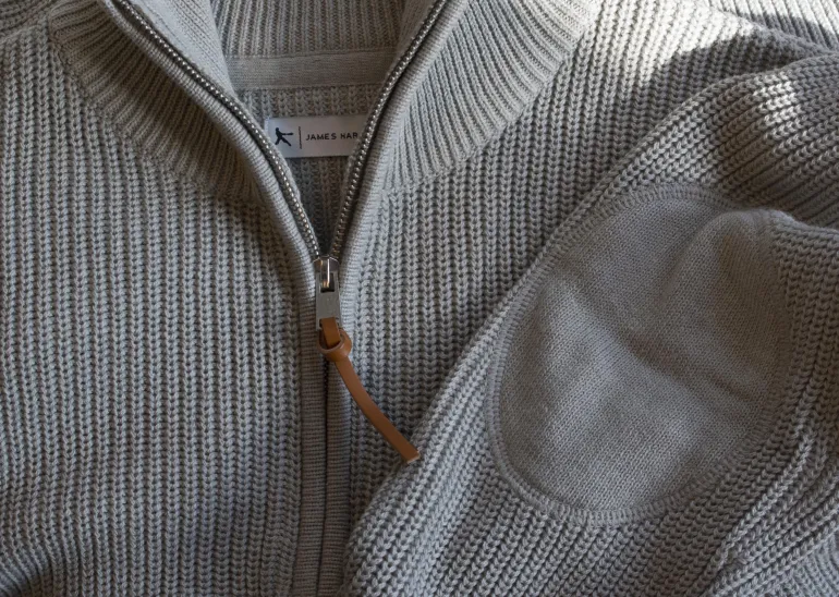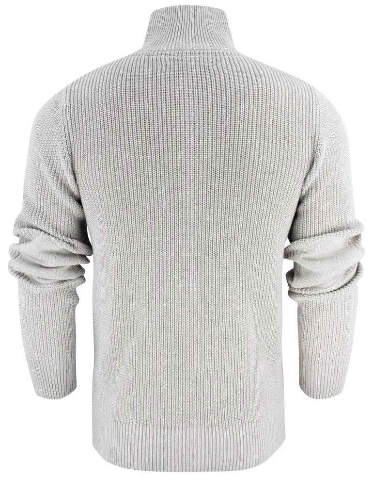 James Harvest Flatwillow on puolivetoketjullinen neulepusero korkealla kauluksella. Resori kauluksessa, hihansuissa ja helmassa. Lisäksi kyynärpäissä vahvikkeet sekä keinonahkainen vetoketjun vedin.