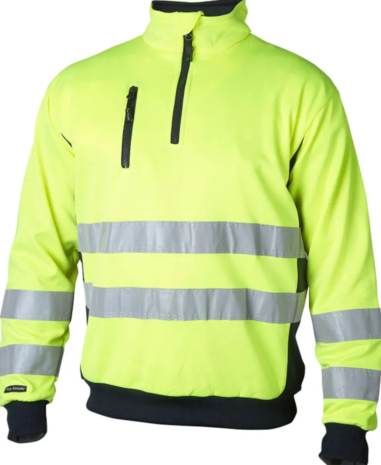 Top Swede 136 on keltainen pitkähihainen kauluksellinen pusero, joka erottuu hyvin (huomioluokka 3), yksi vetoketjullinen rintatasku, vetoketju kauluksessa, resorit helmassa ja hihansuissa. 100 % polyesteriä. Saatavissa eri kokoina.