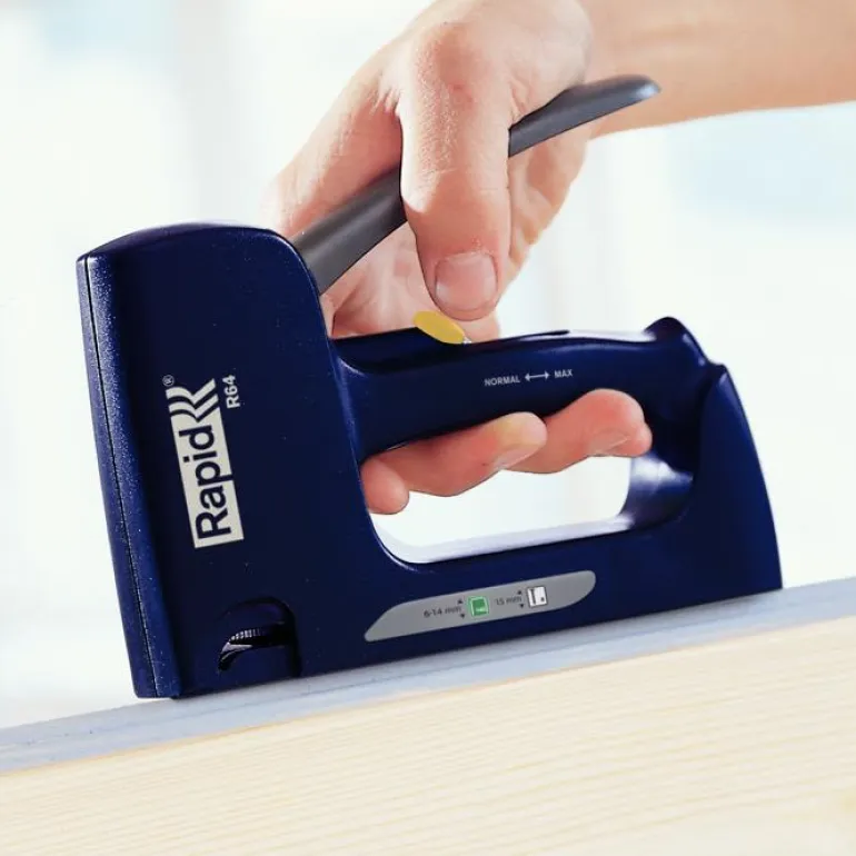 Rapid R64 on iskunkestävästä muovista valmistettu kevyt niittipistooli kotikäyttäjälle, joka arvostaa kestävyyttä ja pitkää käyttöikää. Niittipistooli on varustettu yhdistelmälippaalla, joten voit valita, haluatko ampua niittejä vai nauloja. 2-asentoisen iskuenergian säätimen avulla voit mukauttaa niittausta materiaalin ja niitin pituuden mukaisesti. Rapid R64 sopii säännölliseen työhön, esim. ohuen puun tai eristemateriaalien, muovien, kevytpeitteiden, kartongin, pahvin tai vastaavien materiaalien kiinnittämiseen. Ominaisuudet Leveille niiteille (nro 140) 6–14 mm sekä dyckertnauloille (nro 8) 15 mmIskuenergian säädintä voidaan säätää käytetyn materiaalityypin ja niitin korkeuden mukaanPatentoitu naulaohjain virhelaukaisujen ehkäisemiseksiKaikki sisäyksityiskohdat on tehty parhaasta teräksestäErgonomisesti muotoiltu kahva, jossa säilytystä helpottava lukitustoimintoYhdistelmälipas leveille niiteille ja dyckertnauloilleValmistettu Ruotsissa3 vuoden takuu.