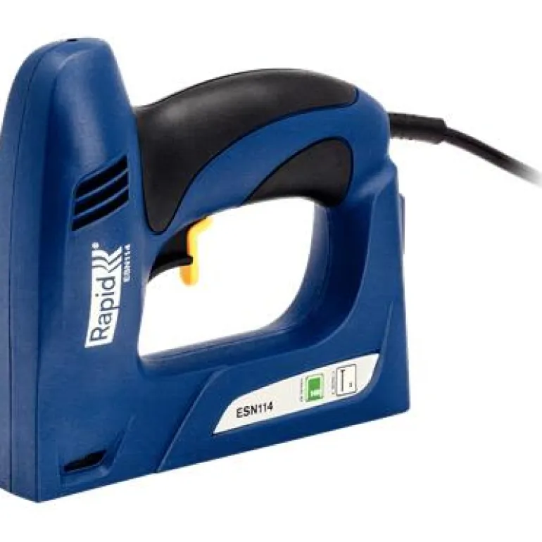 Rapid ESN114 on helppokäyttöinen ja tehokas sähkökäyttöinen niittipistooli vaativiin kodin projekteihin. Kova suorituskyky ja kestävyys auttavat monipuolisessa käytössä. Lyhyt etuosa helpottaa kulmiin pääsyä. Rapid ESN114 sopii säännöllisiin kiinnitystöihin, esim. ohuen puun ja masoniitin tai kartonkien, muovien, kevytpeitteiden tai pahvin kiinnittämiseen kohteissa, joissa hakasilta tarvitaan suurta kiinnityskykyä.