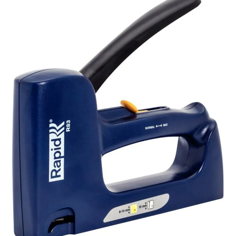 Rapid R83 on iskunkestävästä muovista valmistettu kevyt niittipistooli kotikäyttäjälle, joka arvostaa kestävyyttä ja pitkää käyttöikää. Niittipistooli on varustettu yhdistelmälippaalla, joten voit valita, haluatko ampua niittejä vai nauloja. 2-asentoisen iskuenergian säätimen avulla voit mukauttaa niittausta materiaalin ja niitin pituuden mukaisesti. Rapid R83 sopii huonekalujen verhoiluun, kankaiden kiinnittämiseen ja ohuiden materiaalien niittaukseen. Voidaan käyttää myös listojen asennuksiin. Ominaisuudet Ohuille hakasille (No.13) 6–14 mm sekä dyckertnauloille (No.8) 15 mmIskuenergian säädintä voidaan säätää käytetyn materiaalityypin ja niitin korkeuden mukaanKaikki sisäyksityiskohdat on tehty parhaasta teräksestäErgonomisesti muotoiltu kahva, jossa säilytystä helpottava lukitustoimintoYhdistelmälipas niiteille ja dyckertnauloilleValmistettu Ruotsissa3 vuoden takuu.