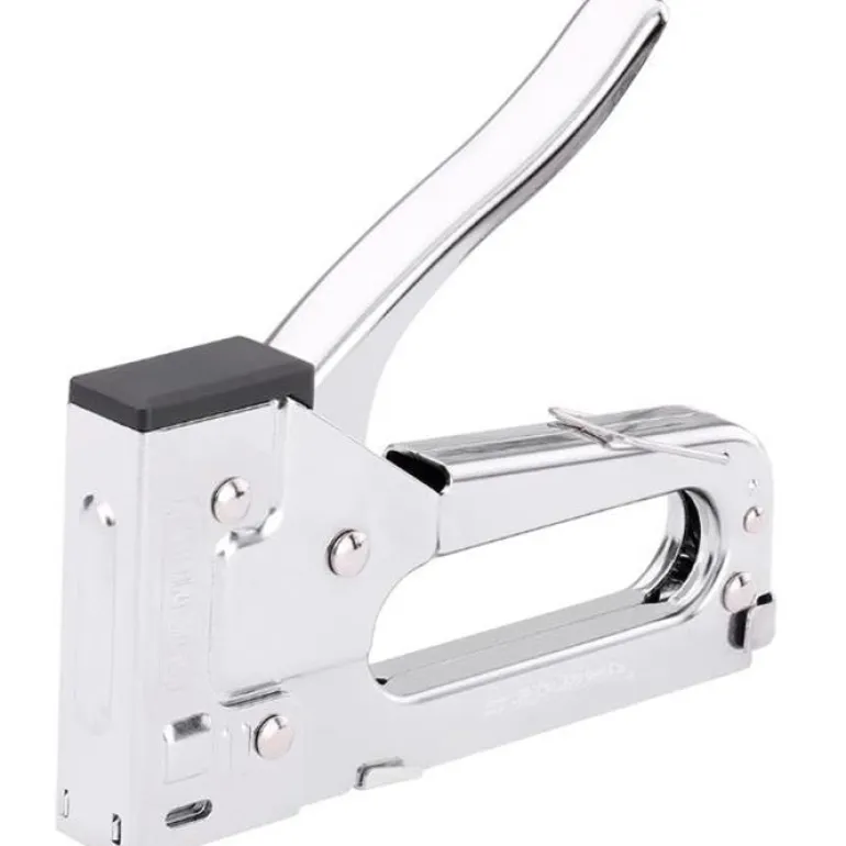 Sähköinen niittipistooli, kromattu teräsrakenne takaa kestävyyden. Tukkeutumisen estotoiminto, täyttö alapuolelta. Kahva voidaan lukita puristettuun asentoon varastoinnin helpottamiseksi, jolloin se vie vähemmän tilaa.