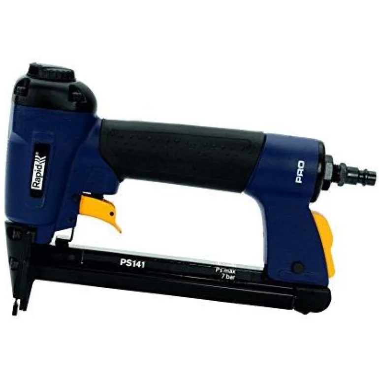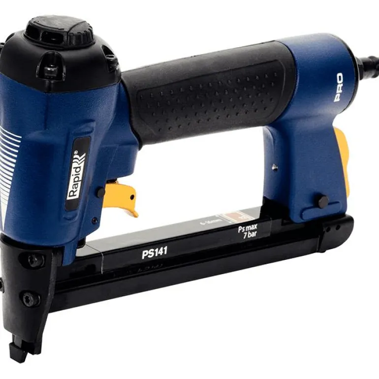 Rapid PS141 on paineilmakäyttöinen niittipistooli, 5–7 bar. 6–16 mm pituisille leveille niiteille nro 12. 360° säädettävä ilmanpoisto pitää lian poissa työpinnalta.