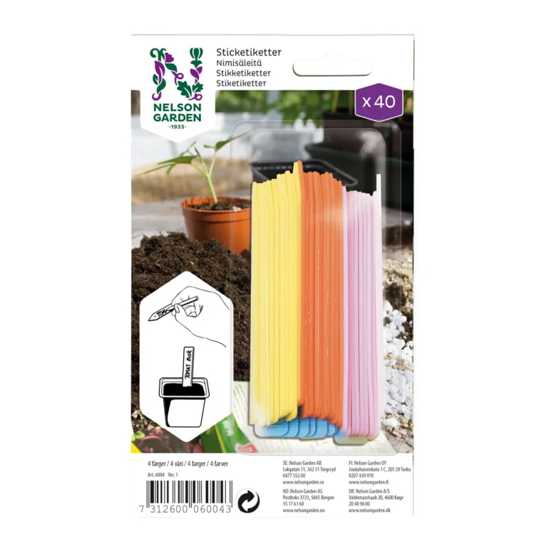 Muovisia etikettejä, neljä eri väriä. Pakkaus sisältää 10 kutakin väriä.