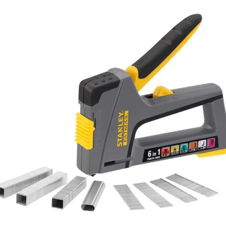 Nitojat ja naulaimet, jotka täytetään alta päin, mikä helpottaa niittien tai dyckertnaulojen asentamista. Pehmeä kahva, jota on helppo painaa alas. Mallissa on ABS-muovikotelo ja kahvalukko.