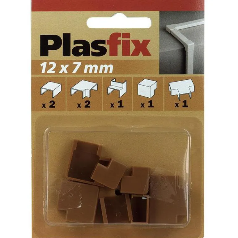 Sarja, jossa on Plasfix-kaapelikanavien liitos- ja kulmakappaleet. Pakkaus sisältää 7 erilaista mallia.