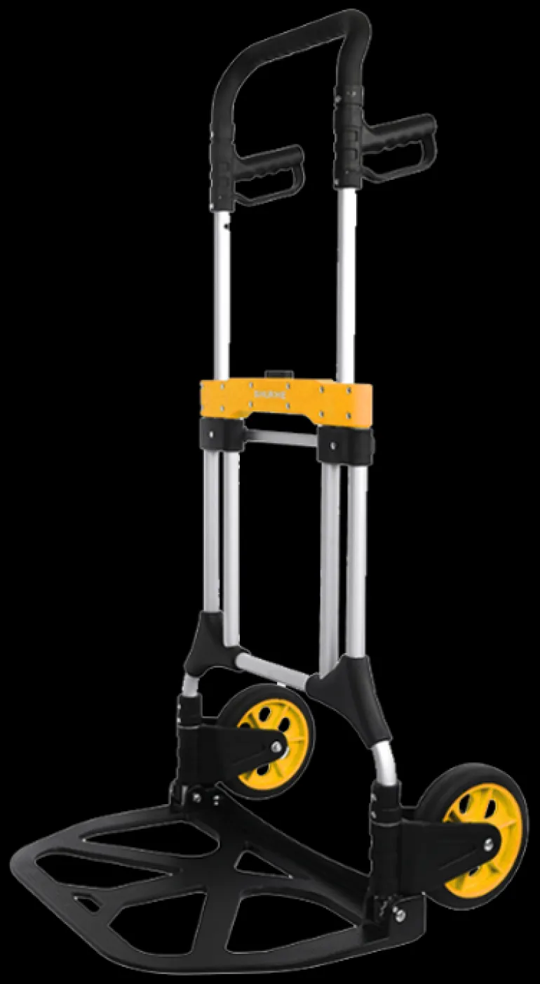 Kokoontaitettava alumiininen nokkakärry muovipyörillä. Kapasiteetti 200 kg.