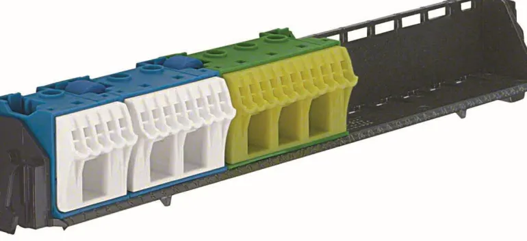 Ylimääräinen nolla- ja maakisko VE-koteloille, leveys 12-18 moduulia, ja Ve-kotelolle, UV-säteilyn kestävä. Maadoitusliittimessä on 3x16mm² + 11x4mm² liitännät. Nollaliittimessä on 3×16 + 13×4 mm² liitännät. Soveltuu malleille Vector ja Volta. Tilaa myös kiinnike E2281692.