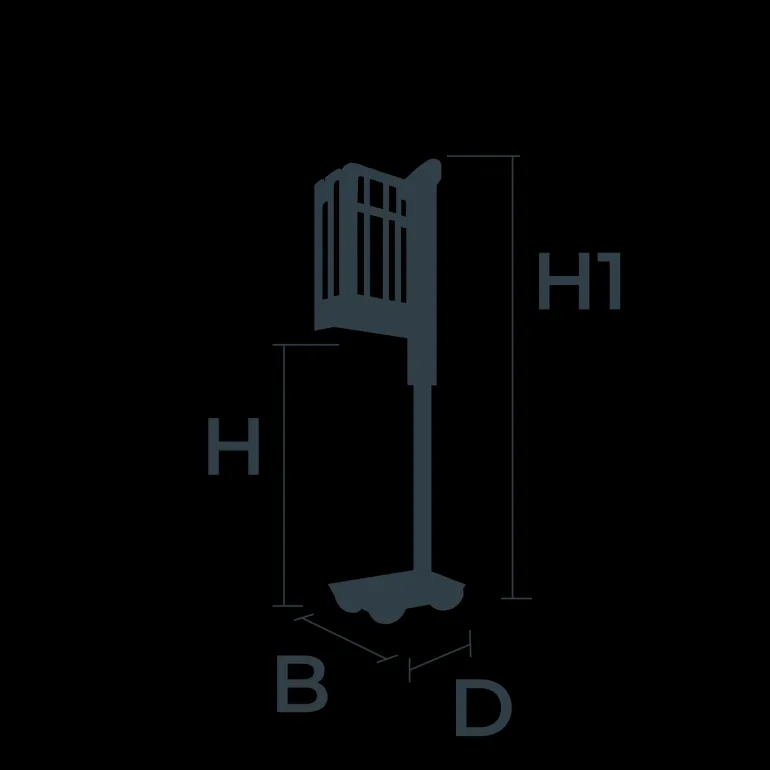 Käsikäyttöinen nostin kiinteistöhuoltoon, teollisuuteen, rakentamiseen ja kunnossapitoon, jossa on usein päästävä katoille tai asennuksiin. Kompaktin koon ansiosta taso voidaan sijoittaa lähelle seinää, josta on helppo yltää kaikkiin suuntiin. Korkeus säädetään portaattomasti, joten löydät aina parhaan työasennon, mikä lisää tehokkuutta ja vähentää väsymystä. Työkalulaatikon avulla voit laskea työkalut alas ja vapauttaa kätesi. Korkeutta säädetään kääntämällä kahvaa manuaalisesti. Jousikuormitettua kahvaa on vaivaton kääntää sekä ylös- että alaspäin mentäessä. Tämä poistaa ulkoisen virtalähteen, akun tai latauksen tarpeen. Saat tuotteen, joka on aina käyttövalmis ja käytännössä lähes huoltovapaa. Pyörät lukittuvat automaattisesti, kun taso nostetaan. Kun nostin on laskettu alas ja tyhjennetty, sitä voidaan liikuttaa ja manuaalisesti siirtämällä vähennät riskiä sen osumisesta sisätilojen rakenteisiin ja laitteisiin.