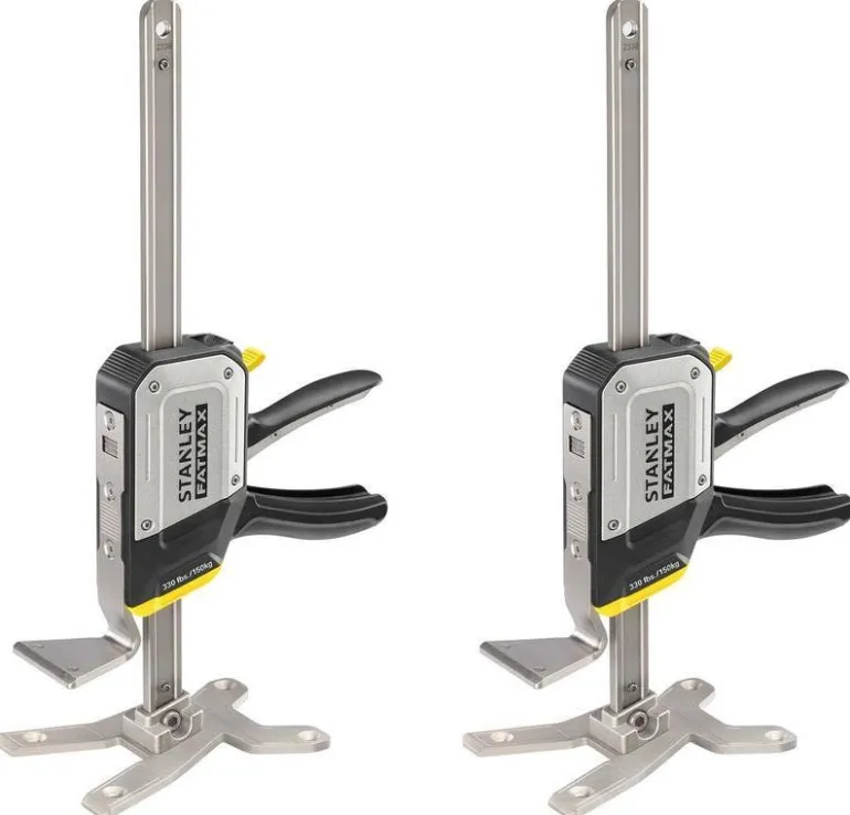 STANLEY FATMAX® TradeLift™ -nostotyökalu on suunniteltu helpottamaan raskaiden materiaalien nostamista, suoristamista, paikallaan pitämistä sekä asentamista. Kestävä nostotyökalu 150 kg nostovoimalla voi olla hyödyksi esim. yksin työskenteleville. Voidaan hyödyntää monissa sovelluksissa, kuten keittiö-, lattia-, ovi- ja ikkuna-asennuksissa, puusepäntöissä, kipsilevytöissä ja yleisrakentamisessa. Nostotyökalussa on vahvistettu painovipu, jota voidaan käyttää myös jalalla, mikä mahdollistaa kädet vapaana työskentelyn mukavuuden ja tehokkuuden vuoksi. Hienosäädin laskee nostolevyä jopa 2,5 mm per painallus tarkkaa säätöä varten. Kokonaisnostokapasiteetti on 220 mm. Maksimaalisen vakauden takaamiseksi nostotyökalussa on neljä upotettua reikää ruuveille, joiden avulla käyttäjä voi kiinnittää nostotyökalun turvallisesti, sekä suuri aluslevy kaatumisriskin minimoimiseksi. Upotettu vapautuspainike estää täyden vapautuksen aktivoinnin vahingossa. Ergonominen kahva tarjoaa pitävän otteen ja lisää käyttömukavuutta. 2 kpl FATMAX® TradeLift™ -nostotyökaluja.