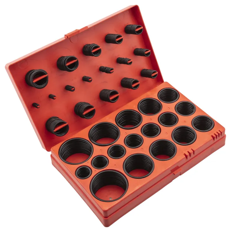 Pela 508697 on O-rengaslajitelma sisältäen 419 kappaletta O-renkaita eri ko`oissa välillä 3-50 mm (sisähalkaisija). O-renkaat kestävät öljyä, mutta ei dieseliä tai bensiiniä.