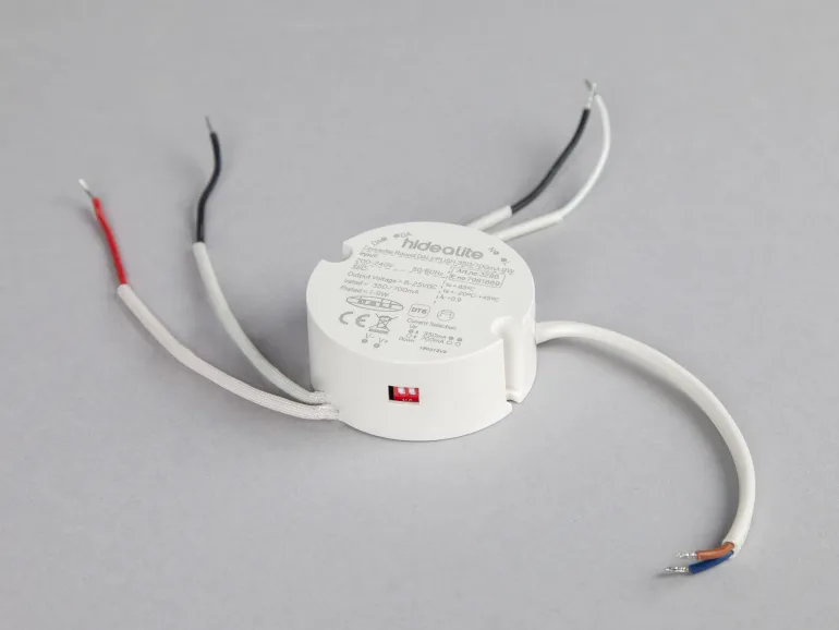 Hide-a-lite Round DALI/PUSH on pieni ja kätevä, himmennettävä LED-muuntaja 350/700mA vakiovirralle. Helppo virranvoimakkuuden asetus DIP-kytkimillä. Sopii kojerasiaan, mikä tekee ohjaimen sijoittamisesta erittäin helppoa. Sopii erinomaisesti pienille vakiovirtavalaisimille, kuten ikkunasyvennysten valaistukseen. Himmennettävä Push (230V) tai DALI -signaalilla. Round-muuntajassa on muistitoiminto, joka sähkökatkon jälkeen sytyttää viimeksi asetettuihin arvoihin.