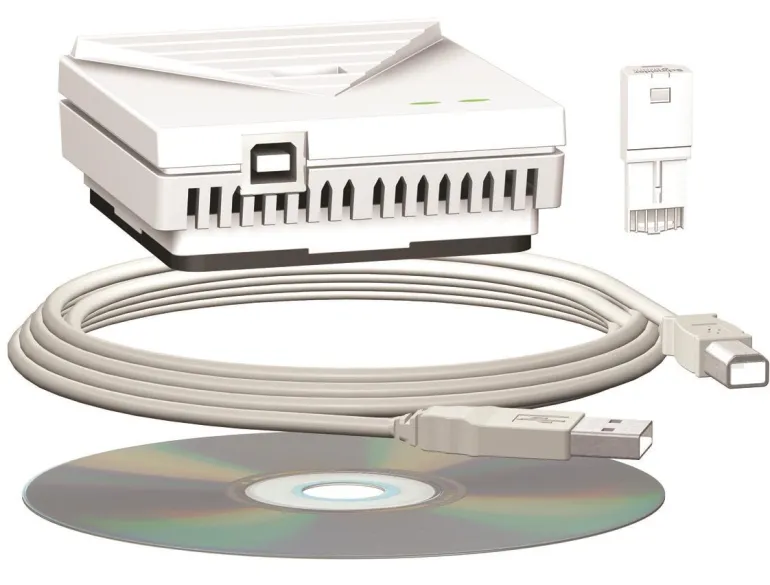 IHP+ ohjelmointisarja PC: lle. Mukana adapteri, muistisiru, CD-ROM ja 2m USB-kaapeli. Voidaan käyttää KNX-ajastimen ohjelmointiin 17 380 19.