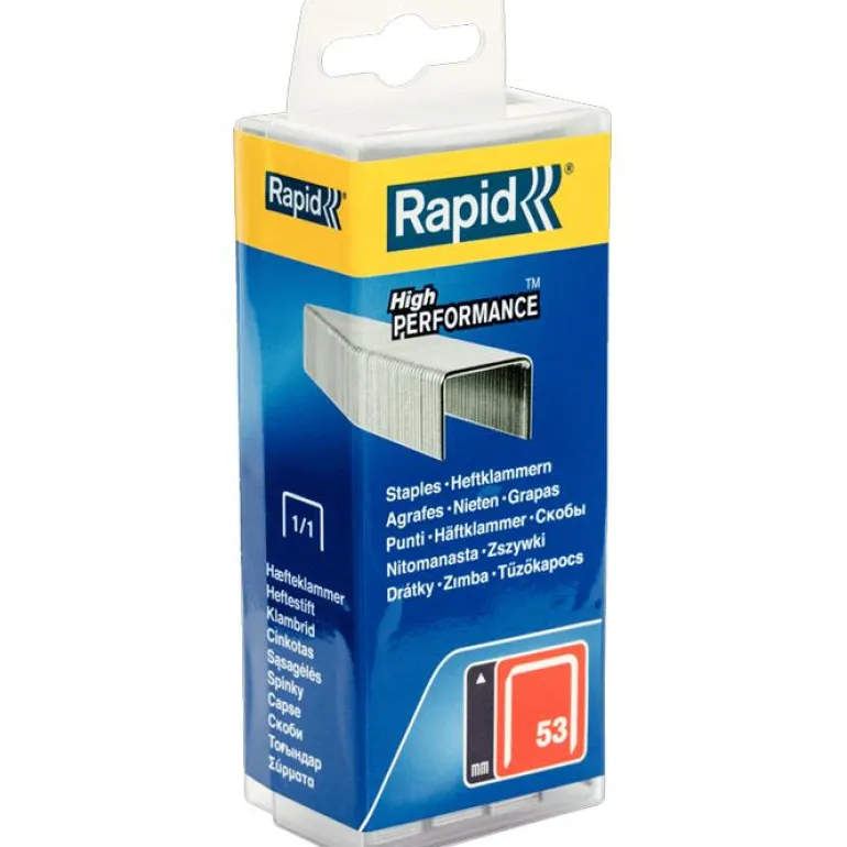 Rapid-niitit nro 53, 10 mm – huippulaatuiset niitit tekstiilien kiinnitykseen. Materiaali on muotoiltu niin, että materiaaliin tulee pienin mahdollinen vaikutus kiinnittämisestä. Niitit sopivat erinomaisesti myös etikettien ja mainosten kiinnittämiseen sekä tilapäiseen niittaukseen. Rapid nro 53 niitit on galvanoitu ja tarkkuusleikattu niin, että ne läpäisevät parhaalla mahdollisella tavalla. Hakastyyppeihin kuuluu myös ruostumaton versio esim. ulkotiloihin.