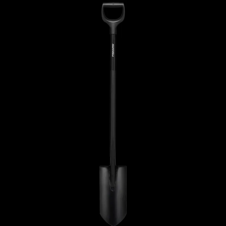 Fiskars Ergonomic Pro™ -ojituslapio soveltuu esimerkiksi ojien, kukkasipulien ja juurien kaivamiseen kovassa maaperässä. D-muotoinen kahva sopii kaikenkokoisille käsille, hanskoilla tai ilman. Kahva on taivutettu ergonomian parantamiseksi, ja pyöristetty teräsvarsi tekee lapiosta erittäin kestävän. Booriteräksestä valmistettu pää takaa enemmän voimaa ja kestävyyttä kovaa maata tai kasveja kaivaessa.