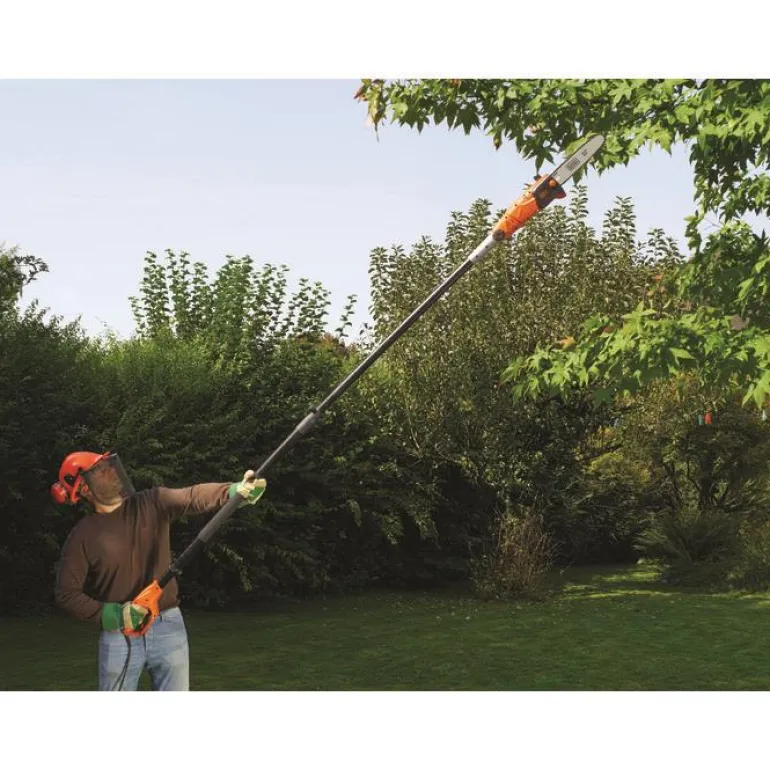 Black & Decker PS7525-QS on 800 W, kääntyvä pää, säädettävä varsi jopa 2,7 metriä ja kapasiteetti käsitellä suuria oksia, joiden halkaisija on jopa 25 cm.