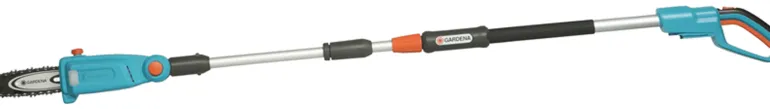 GARDENA TCS on 18 V teleskooppinen oksasaha, joka on kätevä, kompakti ja leikkaa tarkasti. 20 senttimetriä pitkän terän ja teleskooppivarren ansiosta pääset käsiksi jopa neljän metrin korkeudelle kasvaviin oksiin ilman, että sinun tarvitsee seistä vaarallisesti heiluvilla tikkailla. Oksasaha painaa vain 3,5 kiloa, joten sitä on kevyt käyttää. Kapea leikkuupää on kätevä kahdestakin syystä. Terää kallistamalla pääset käsiksi ahtaisiin paikkoihin puunlatvoissa. Lisäksi voit pilkkoa maahan pudonneet oksat polvistumatta tai kumartumatta. Näin pystyt keräämään ja kierrättämään oksan pätkät helposti.