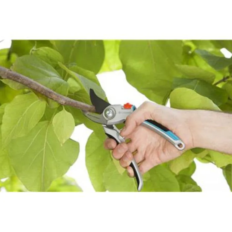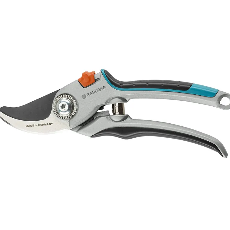 L-koon GARDENA Comfort -oksasaksissa on tarkkuushiotut terät, joilla voidaan leikata enintään Ø 25 mm:n oksia. Hyvä valinta tuoreiden oksien ja puiden leikkaamiseen. Ergonomisten alumiinikahvojen ylä- ja alapuolen pehmeät muoviosat takaavat optimaalisen työskentelymukavuuden. Puutarhasakset voi lukita helposti yhdellä kädellä turvallista säilytystä varten.