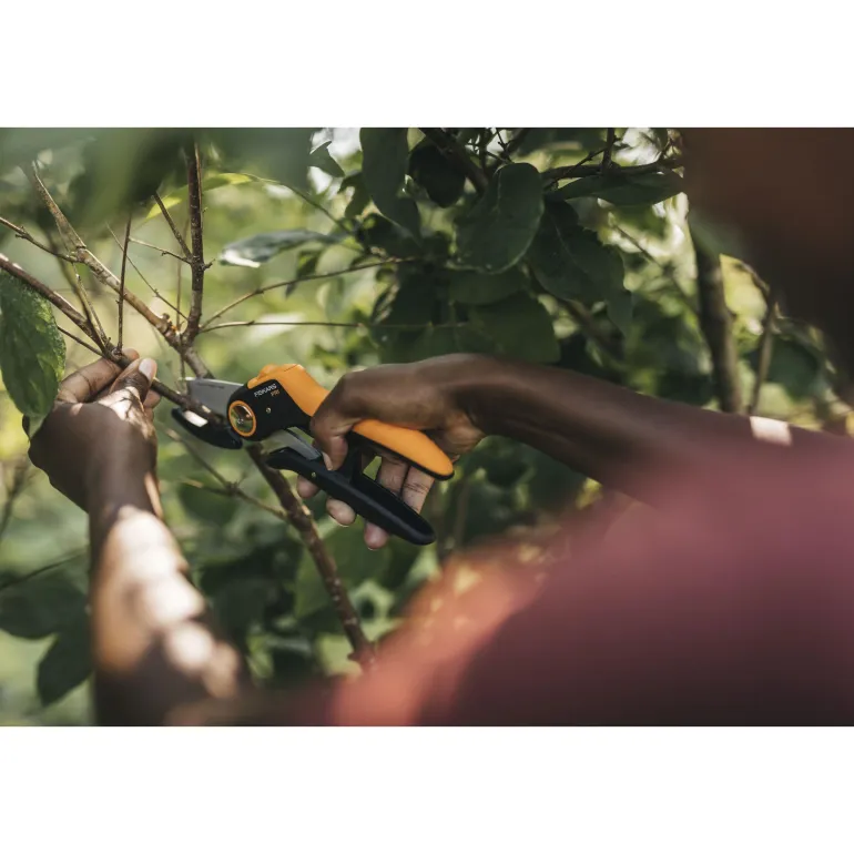 Kuivien oksien leikkuusakset, mukana vastakappale. Ainutlaatuinen PowerLever-mekanismi tarjoaa enemmän leikkuutehoa pienemmällä vaivalla.