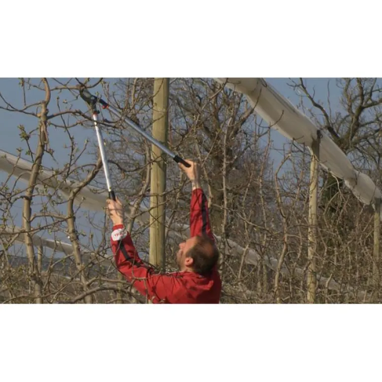 Välityksellä varustetut raivaussakset, joiden kevyet alumiinivarret helpottavat käsittelyä pään yläpuolella. Läpikarkaistut xylan-pinnoitetut terät vähentävät kitkaa. Saksien kapasiteetti on 45 mm.