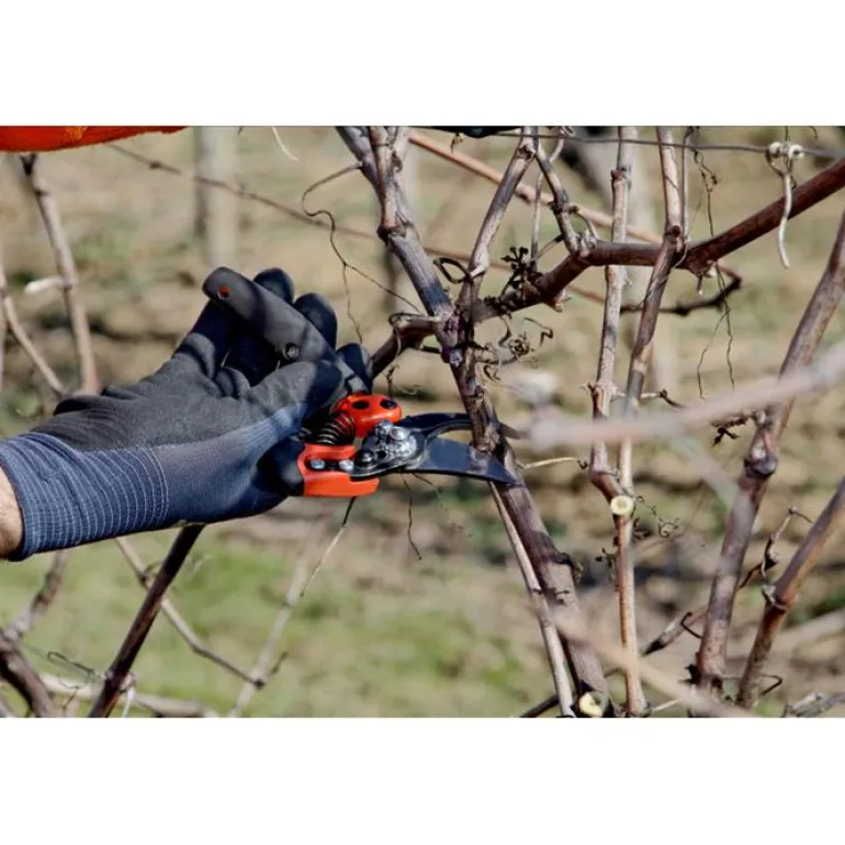 Ergonomisten oksasaksien alakahva joustaa leikattaessa käden liikkeen mukaan ja vähentää käden väsymistä. Hiontamenetelmän ansiosta terät pysyvät terävinä pidempään. Terien leikkuupaksuus on 20 mm.