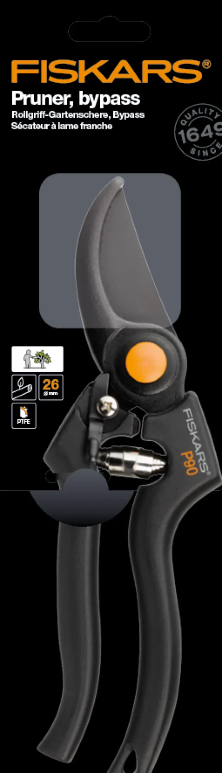 Sivuleikkurilla varustetut ammattilaisen oksasakset tuoreille oksille Ø26 mm. Mukana lankaleikkuri. Mutterin lukitusrengas mahdollistaa säädettävän kiristyksen tasaisten ja tarkkojen leikkausten varmistamiseksi.