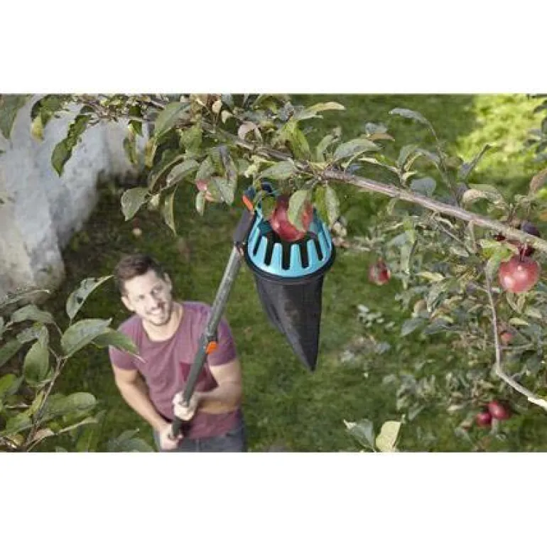 GARDENA Combisystem -omenapoimuri sopii erinomaisesti hedelmien poimimiseen suoraan puusta. Pienet hampaat muovisten piikkien välissä tekevät myös pienempien hedelmien poimimisesta helppoa. Työkulmaa voidaan säätää tarvittaessa pikalukituksella. Keräyspussi on valmistettu verkkomateriaalista, jonka sisälle on helppo nähdä. Poimurissa on kahva, ja sitä voidaan käyttää kaikkien GARDENA Combisystem -varsien kanssa.