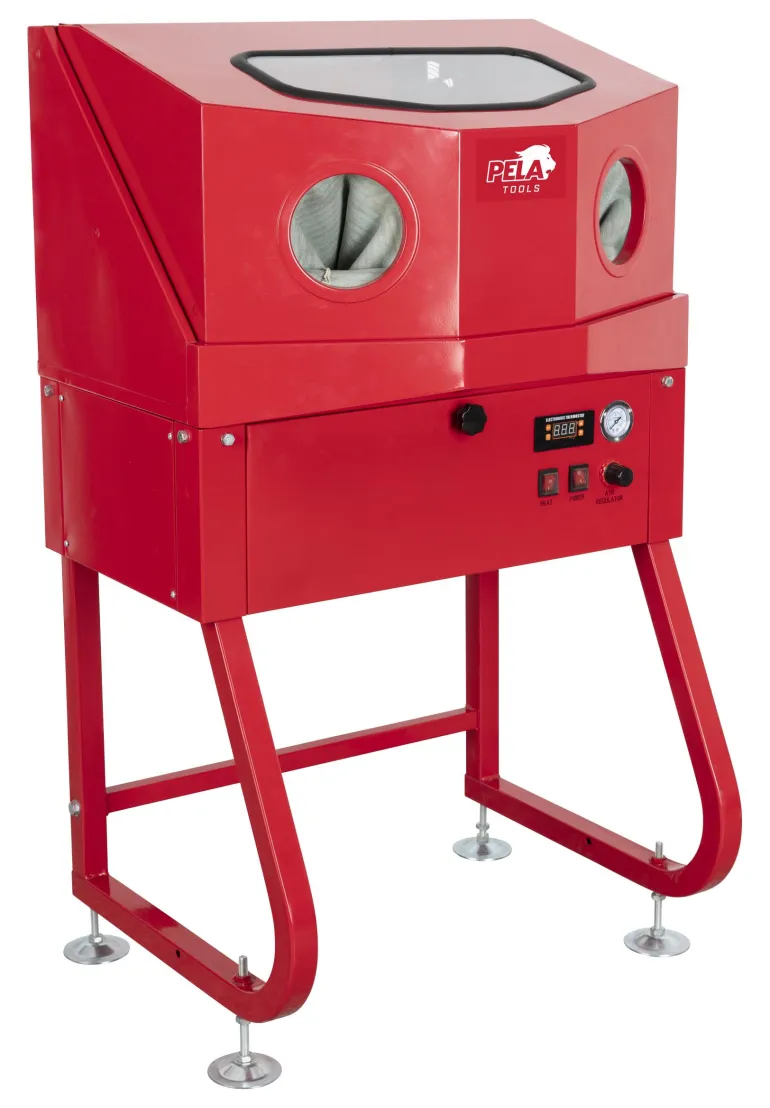Pela 507493 on osienpesukaappi (osapesuri) lämmittimellä tehokasta moottoriosien ja muiden osien puhdistamista varten. Hiekkapuhalluskaapin tavoin suljettu osienpesukaappi suojaa käyttäjää roiskeelta, pahalta hajulta sekä muilta lian ja puhdistusaineen aiheuttamilta haitoilta. Sisäänrakennetulla lämmittimellä puhdistusaine lämpenee 50°C:een* saakka tehokkaampaa puhdistusta varten. Kaapissa on myös digitaalinen termostaatti, valaistus, poistoimu, paineensäädin ja painemittari. Kompressoria tarvitaan, minimi 3 hv.