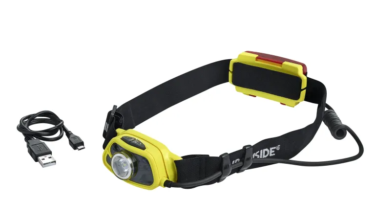 Ladattava otsalamppu. Elastinen otsahihna. Toiminnot: Valittavissa oleva tunnistinohjaus – liiketunnistin ja valotunnistin. Liiketunnistimen ansiosta lamppu voidaan sytyttää ja sammuttaa painiketta painamatta. Soveltuu erityisesti töihin, jotka tehdään käsineet kädessä. Kun valotunnistin aktivoituu, lamppu syttyy ja sammuu automaattisesti ympäristön valaistustason mukaan. Maksimi/korkea/matala/varoitusvalo. Punainen valo takana: Kiinteä/vilkku/pulssi. Kantama: 300lm/125m, 100lm/70m, 10lm/25m. LED-merkkivalo näyttää akkukeston ja varaustilan. Ladataan suoraan paristokoteloon. Toimitukseen sisältyy kiinteä ladattava 3,7 V/1200 mAh litiumpolymeeriakku ja micro USB -kaapeli.