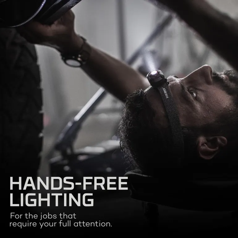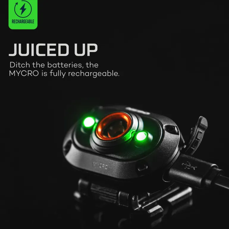 NEBO Mycro Headlight & Cap Light on ladattava, hands-free-mallinen 400 lumenin otsa-/lippalakkilamppu. Lampun voi takana olevan kiinnikkeen avulla kiinnittää helposti lippalakin lippaan. Integroidun kallistustoiminnon avulla voit kohdistaa valon juuri haluamaasi paikkaan. Mycro-valossa on tuplasti vihreitä ja punaisia LED-diodeja sekä suoraan-punaiselle-pimeänäkötoiminto.