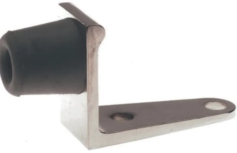 Ovenpysäytin ruostumatonta terästä, vaimennin 30 mm harmaata luonnonkumia. Suojaa ovea ja seiniä iskuilta ja vahingoilta.