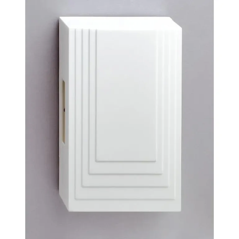 Valkoinen ovikello, jossa on hillitty viivakuvio. Kaksinuottinen soittoääni yhdelle ovelle ja yksinuottinen soittoääni toiselle ovelle. Äänitaso 80 dB.
