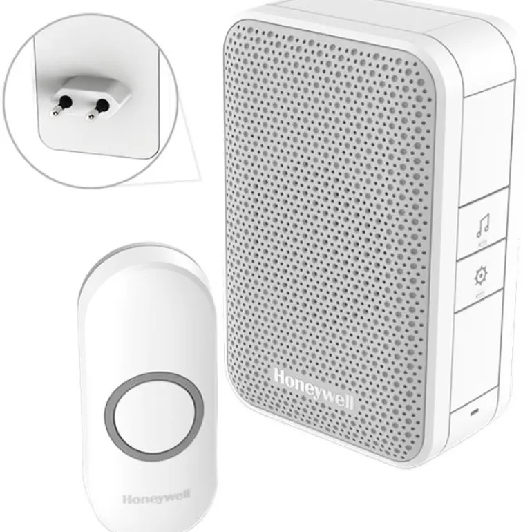 Honeywell Home DC311NP2 on valkoinen ovikello, jossa on tyylikäs muotoilu ja takana pistoke. Ovikelloon ei siis tarvitse vaihtaa paristoja. Ovikello DC311NP2 on valmis käytettäväksi suoraan pakkauksesta ja muodostaa langattoman yhteyden oven painonappiin 150 metrin etäisyydellä. Ovikellon voi sijoittaa minne tahansa talossa. Mukana säänkestävä painike ja paristo CR2032. Äänenvoimakkuus 80 dB.