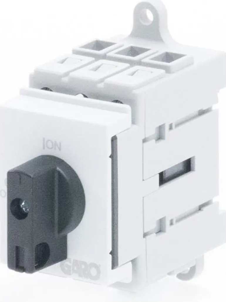 Pääkytkin DIN-kiskoon asennettavaksi. Täyttää vaatimukset pääkytkimenä, jolla on erotinominaisuudet, voidaan sijoittaa koteloihin, joissa on johdonsuojakatkaisijat.