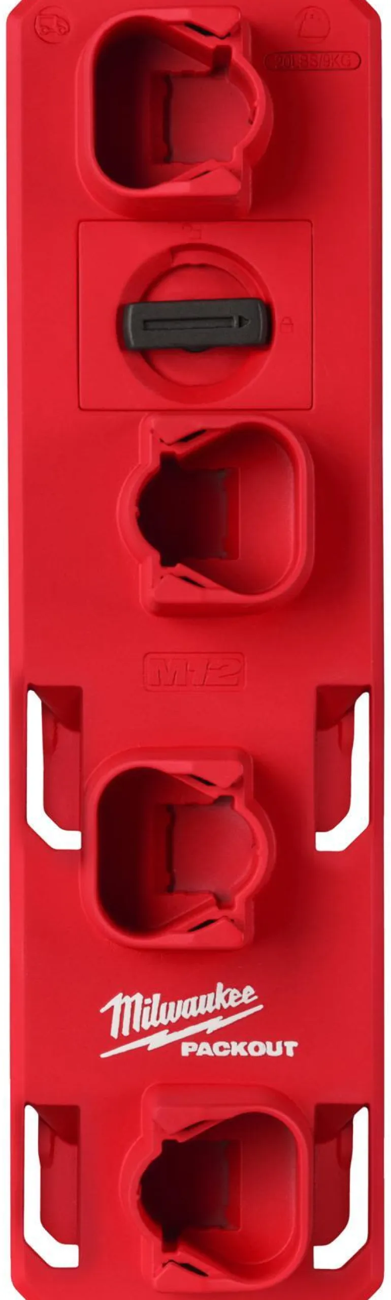 Milwaukee 4932480708 M12™ -akkupidike, jonka avulla akut pysyvät tukevasti kiinni pidikkeessä. Helppo ja nopea akkujen käyttöönotto. Turvallinen ja helppo kiinnitys napsautus- ja lukitusmekanismilla. Räätälöi säilytysjärjestelmäsi tarpeiden mukaan. Säilöö maks. 4 kpl M12™-akkua. Osa PACKOUT™ Shop Storage -säilytysjärjestelmää.