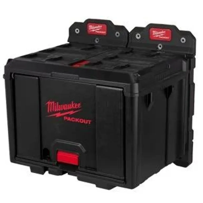 Milwaukee 4932480623 PACKOUT™-kaappi, joka voidaan pinota PACKOUT™-laatikoiden päälle tai kiinnittää PACKOUT™-kiinnitysalustaan.